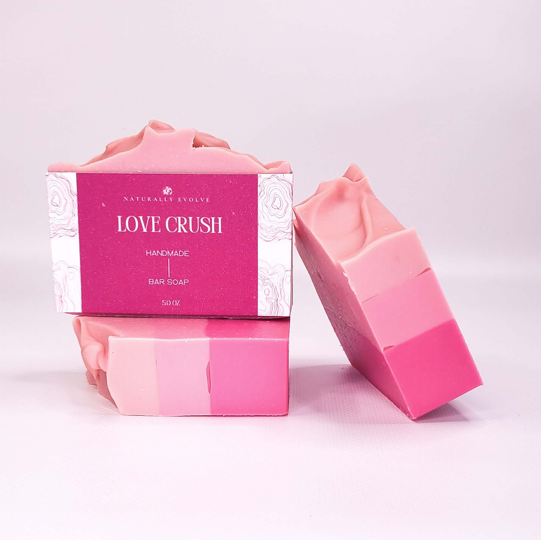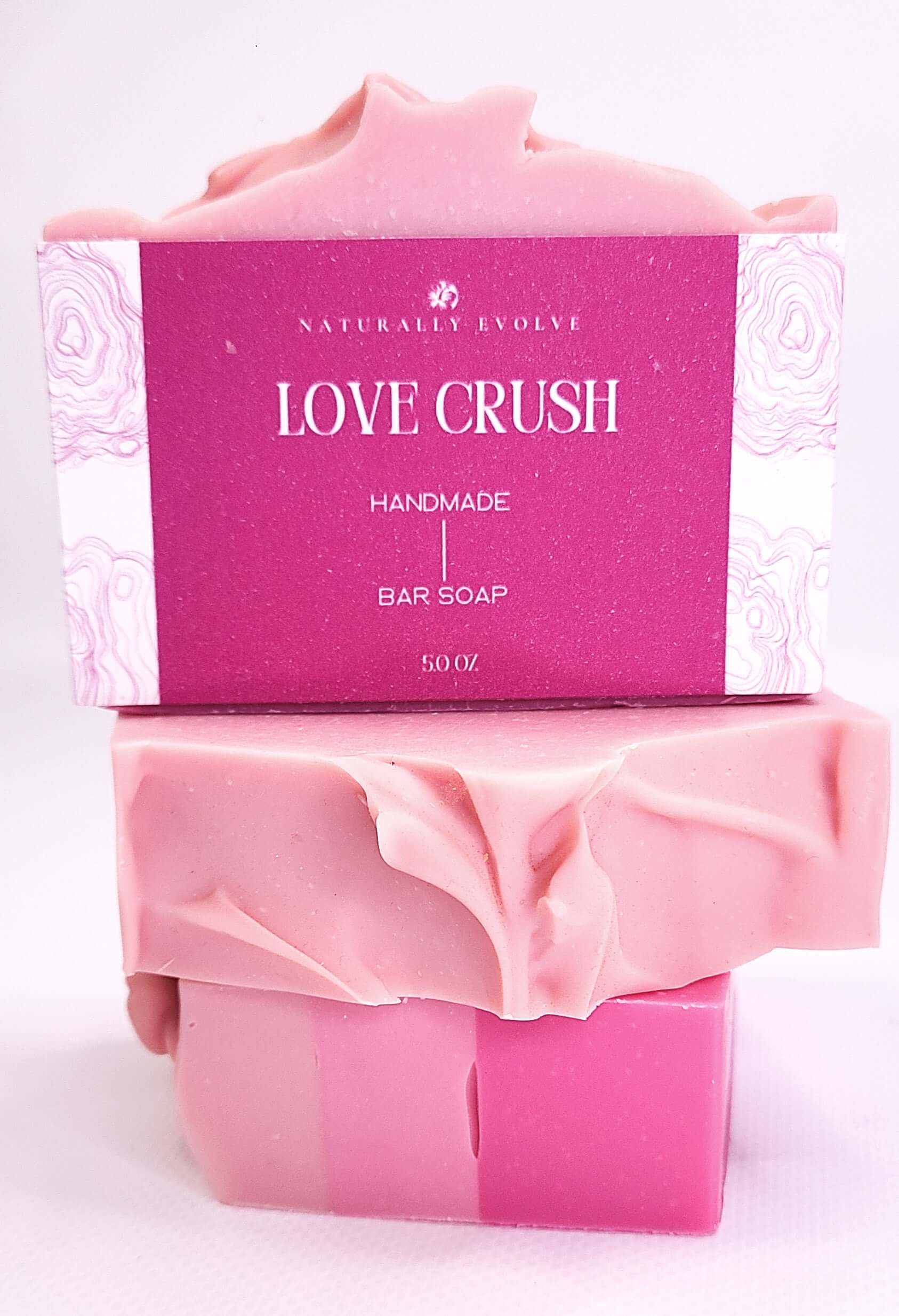 Our Love Crush soap combines romantic floral and fruity notes for a luxurious bathing experience. Formulated to pamper your skin while enveloping you in an irresistible, delicate fragrance, this soap is perfect for those moments when you want to feel both indulgent and refreshed. Every wash feels like love at first lather.
